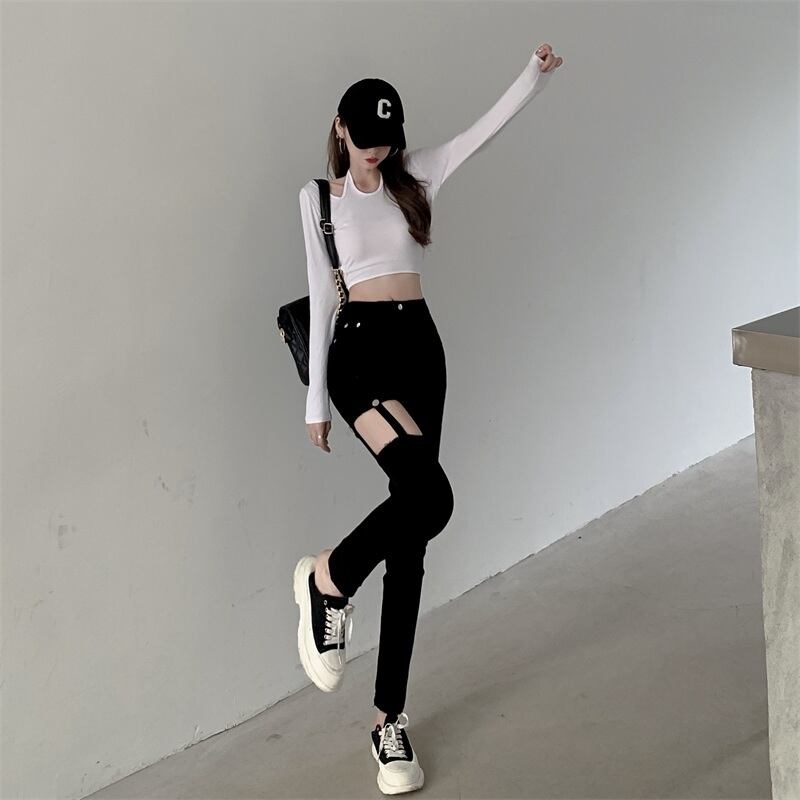 ウェストブラックジーンズ レッドパンツ オータム 秋物 Xiaofeijia98903928030