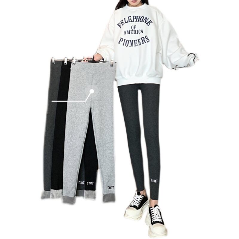 オータムクロップドベルベットカジュアルパンツ レギンス ハイウェストウェスト レッド 刺繍 秋物 Xiaofeijia30799526801