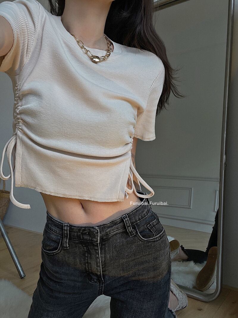 Tシャツ レディースギャザークロップトップ トップス サマー 夏物 ヨーロピアン Xiaofeijia78161121694