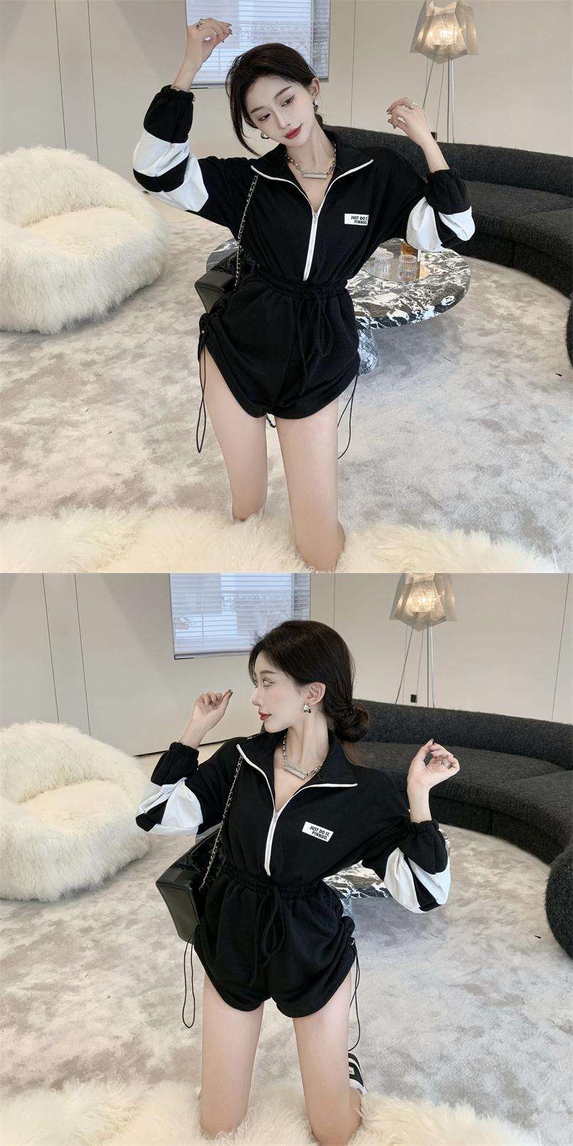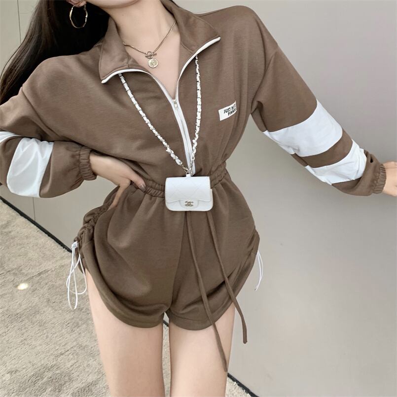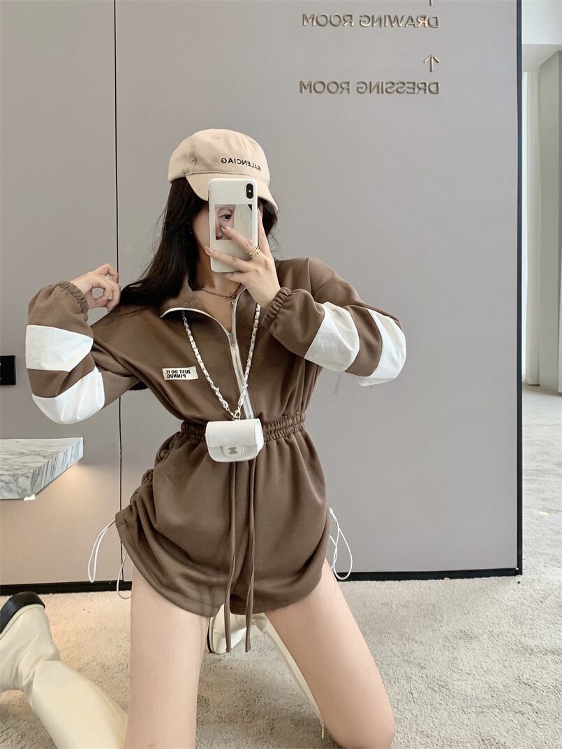 オータムスタイルハイウェストジッパーカラーワンピースストレッチギャザーカジュアル ロング エラスティック 伸縮 秋物 ショーツ ブルマー Xiaofeijia21685570994