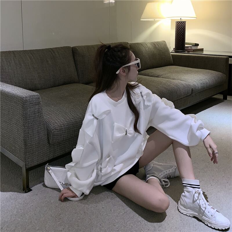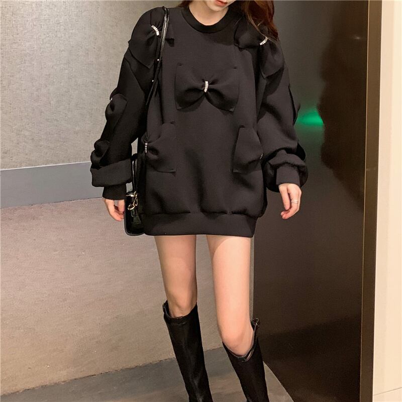 スタイルセーター ラウンドネックルーズブラウス オータム ロング リボン 秋物 Oネック Xiaofeijia99063588594