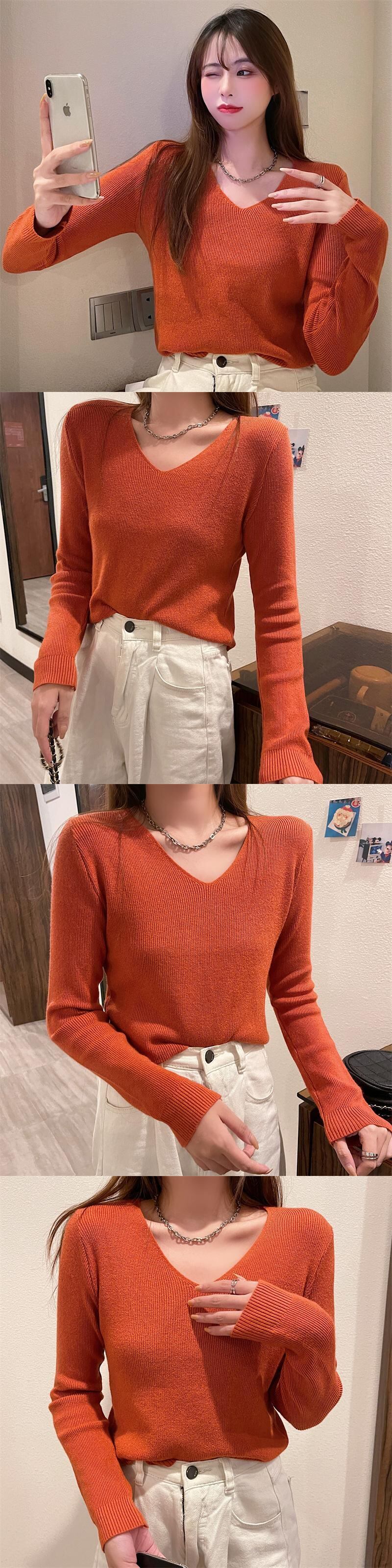 マルチカラーVネックニットシャツ オータムルーズ ロング 秋物 Xiaofeijia65261513422