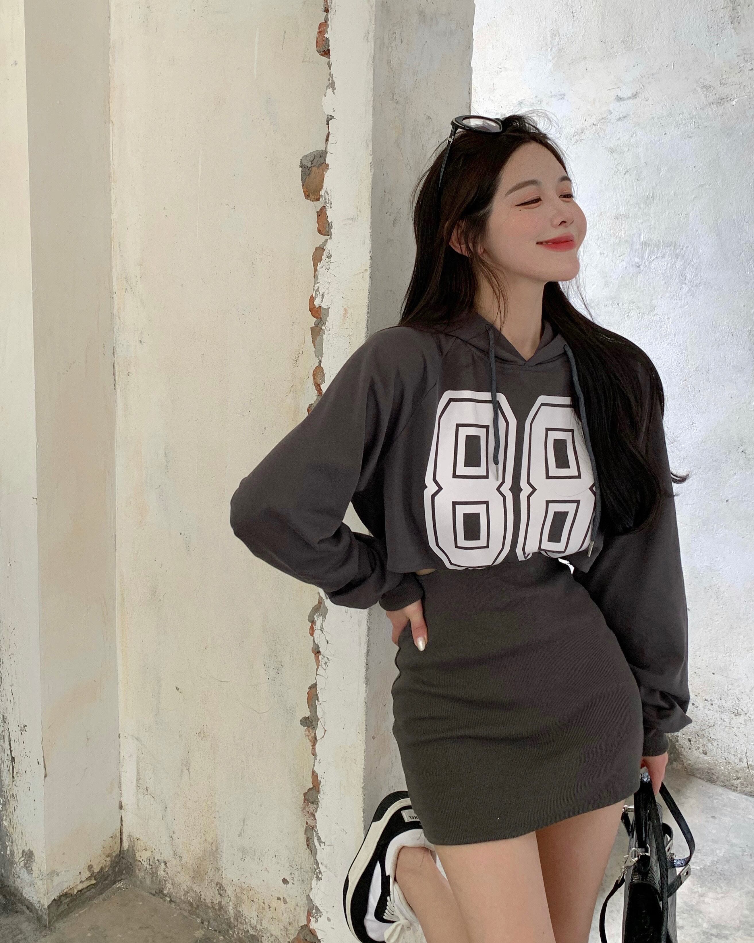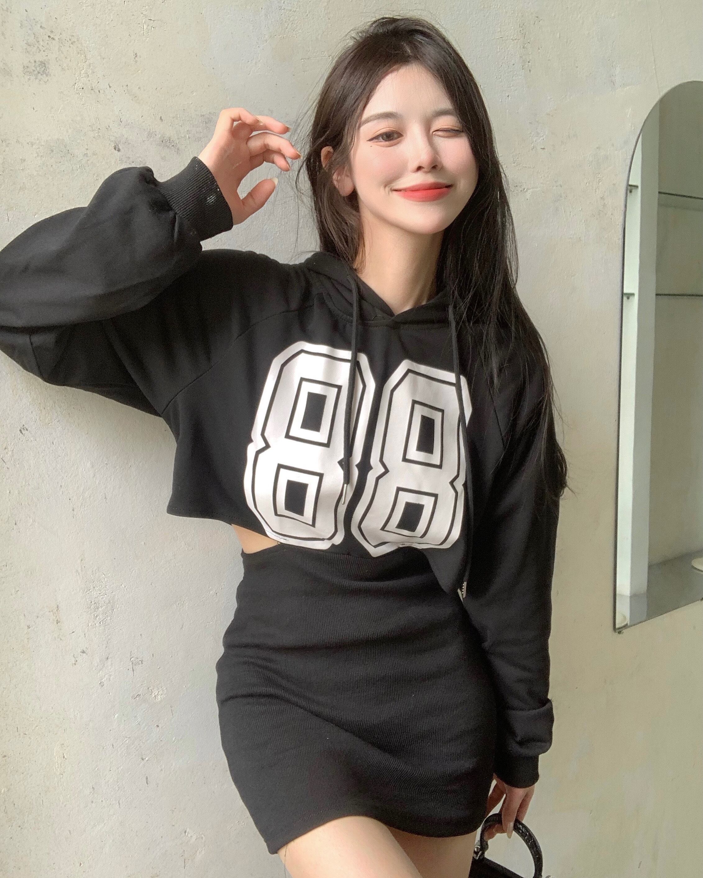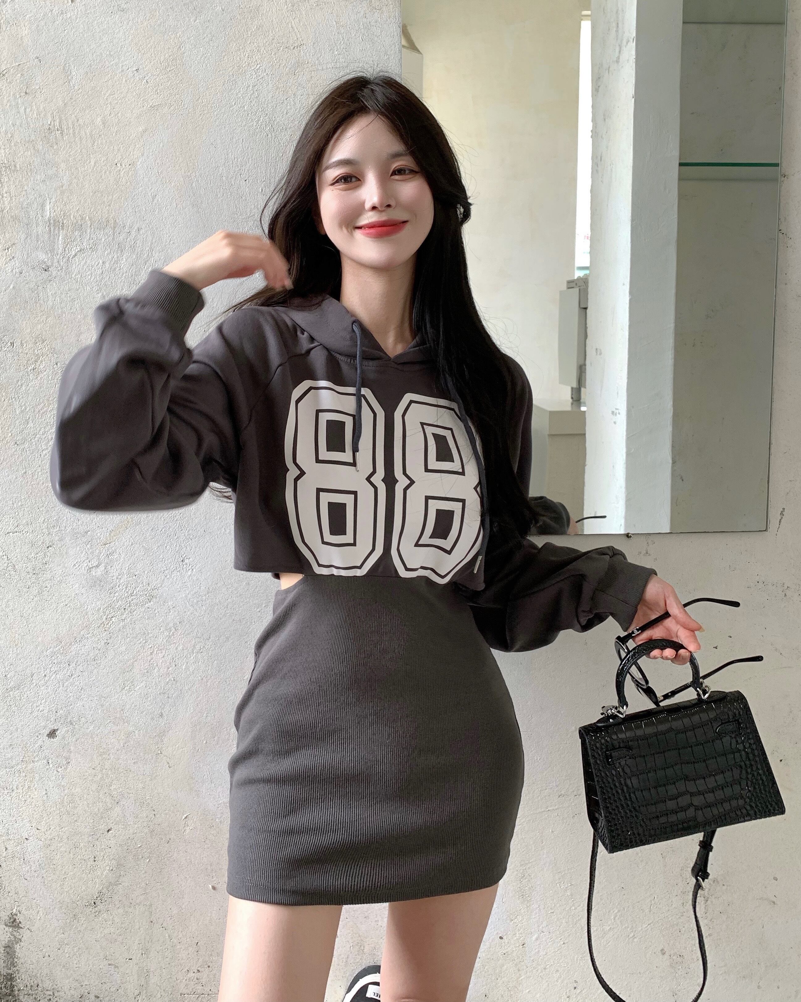フードプリントセーター ドレス ウェストオータムショートスカート ロング 秋物 Xiaofeijia1360830447