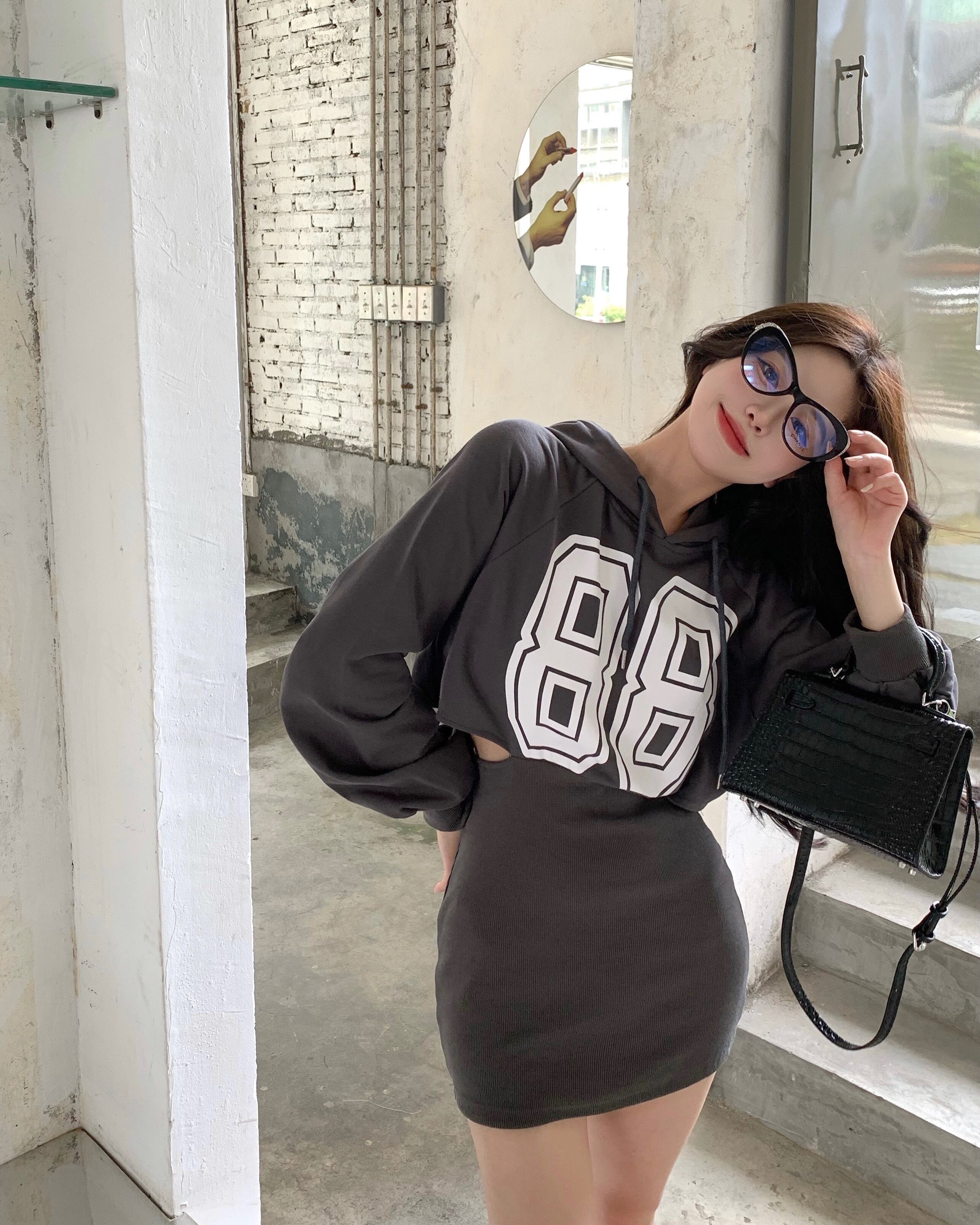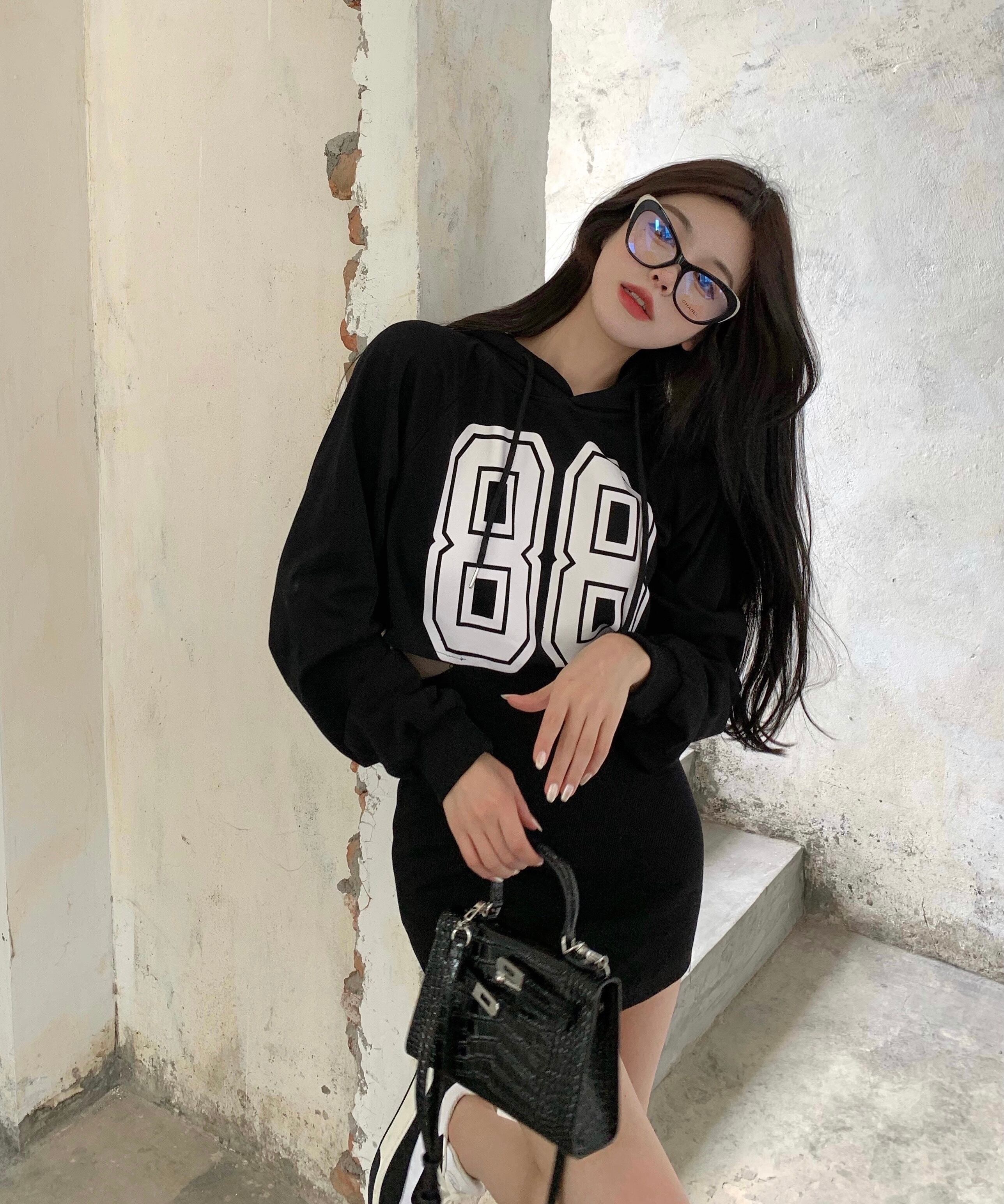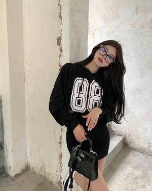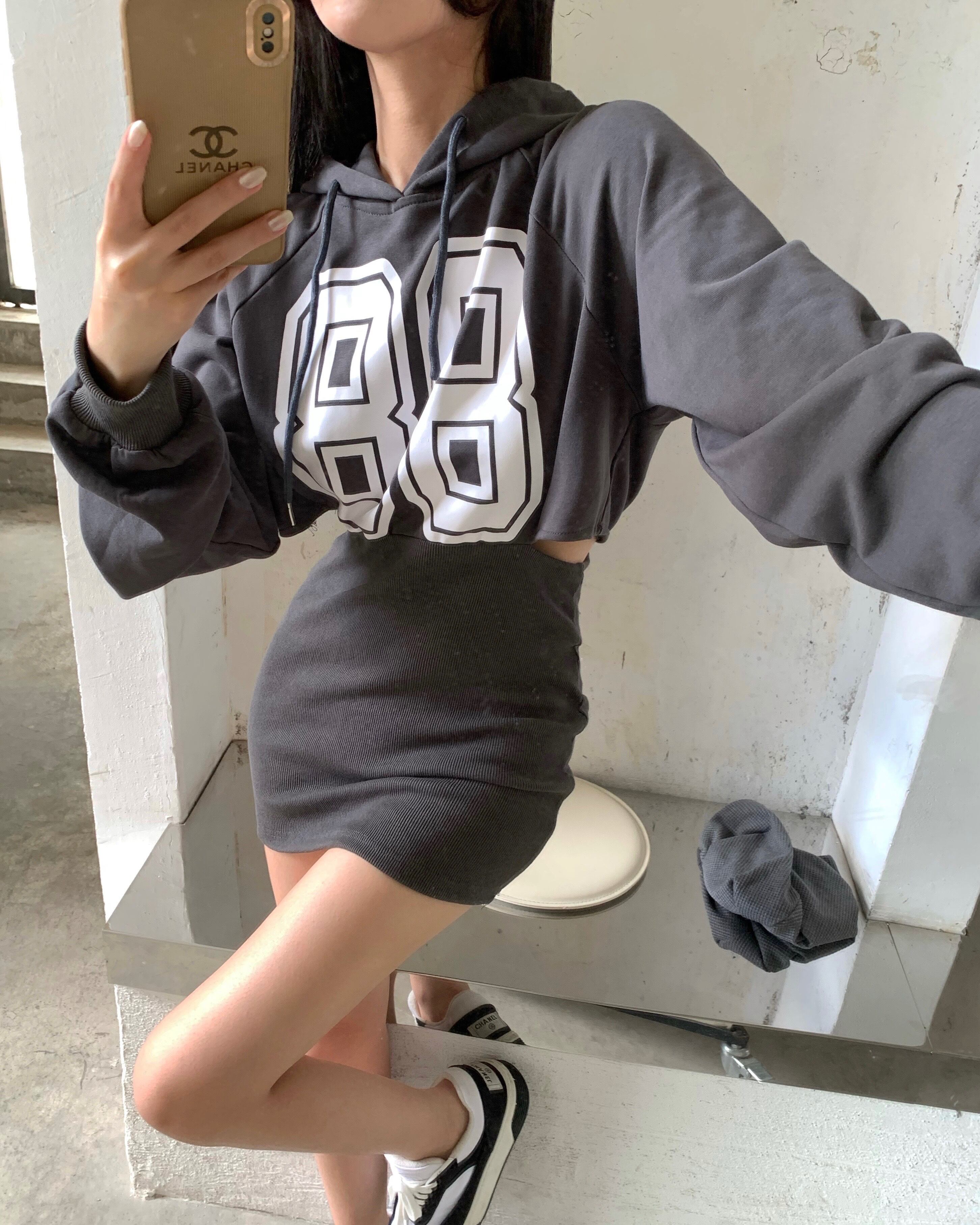 フードプリントセーター ドレス ウェストオータムショートスカート ロング 秋物 Xiaofeijia1360830447