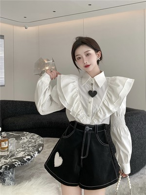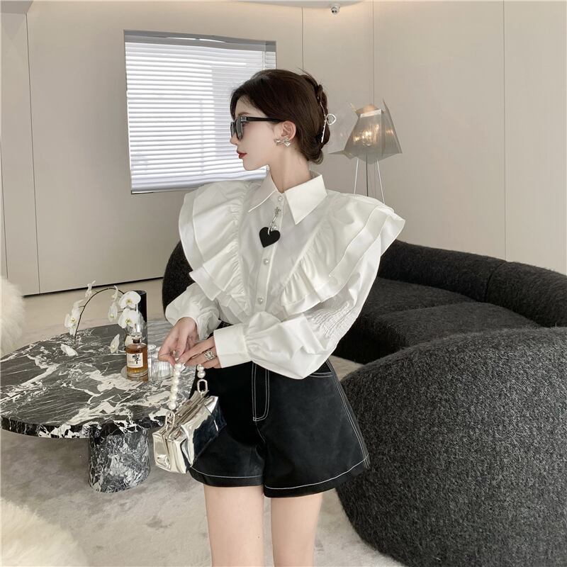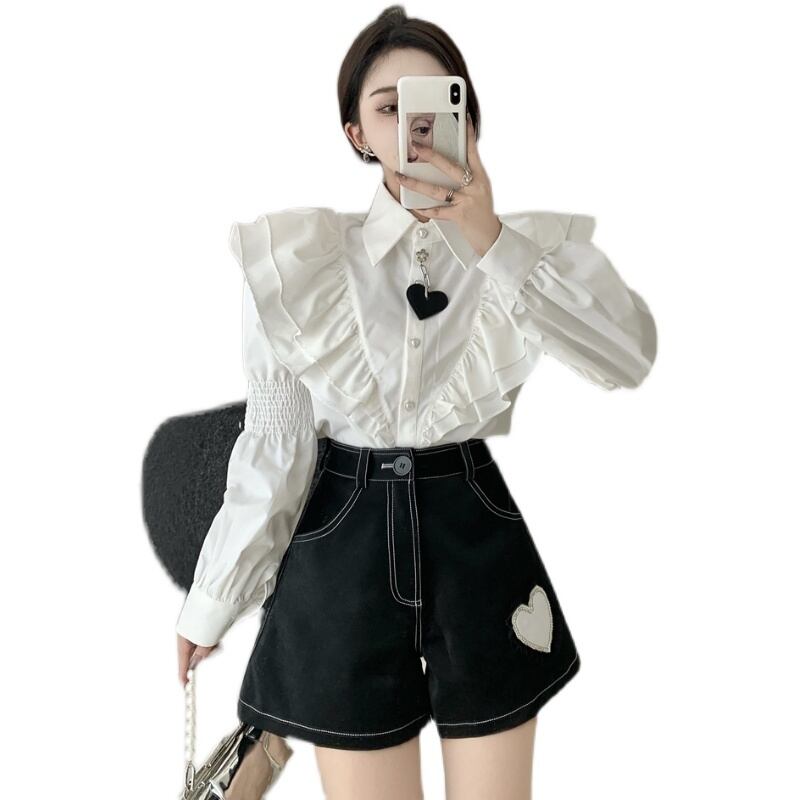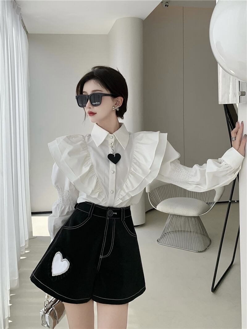 ホワイトシャツ トップス レザーショーツ ロング レッド 刺繍 ブルマー Xiaofeijia10853177066