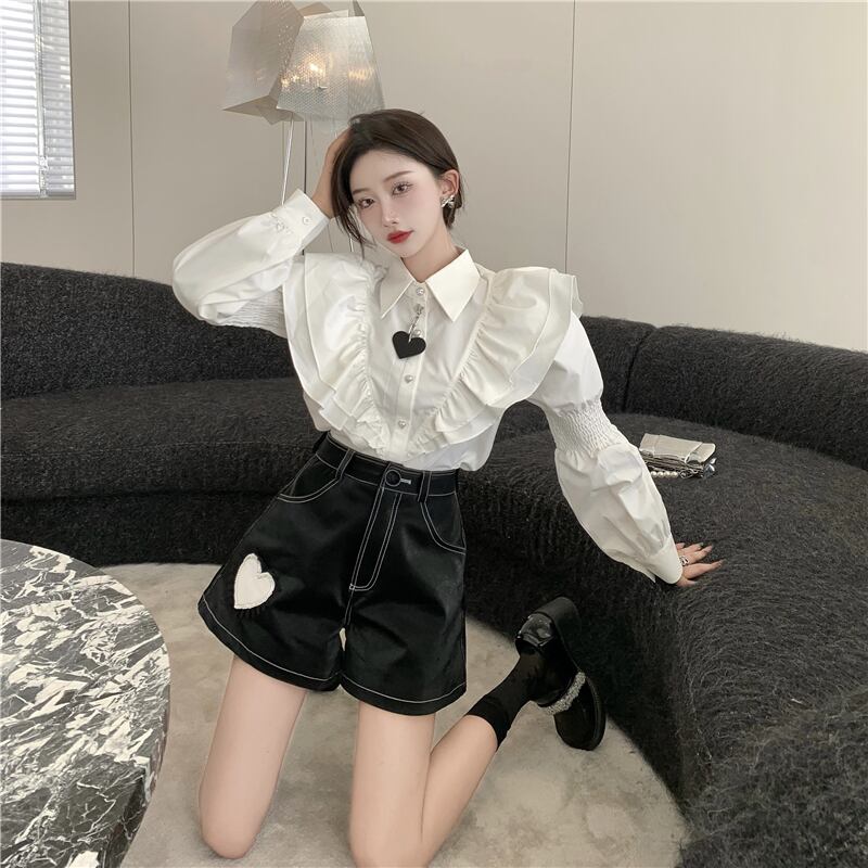 色:白のシャツ,PUショーツ