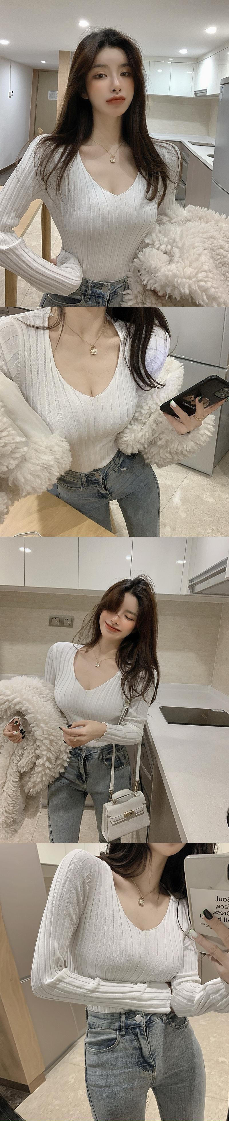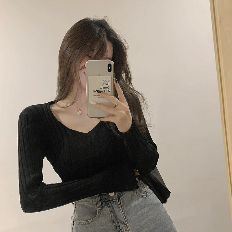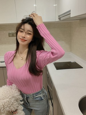 オータムニットセーター シャツ VネックTシャツ 薄手トップス ロング 秋物 Xiaofeijia60483848256