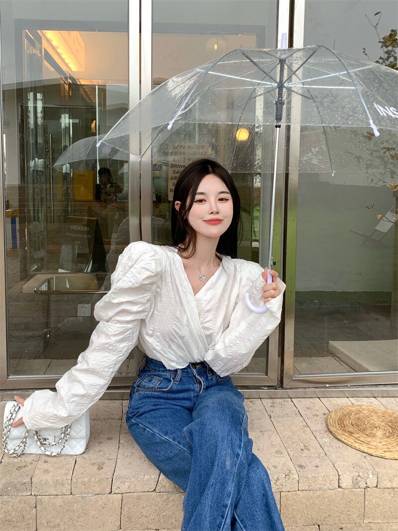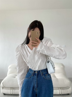 Vネックスリーブシャツ スタイルカラートップス レディース レッド ピュア Xiaofeijia67466008596