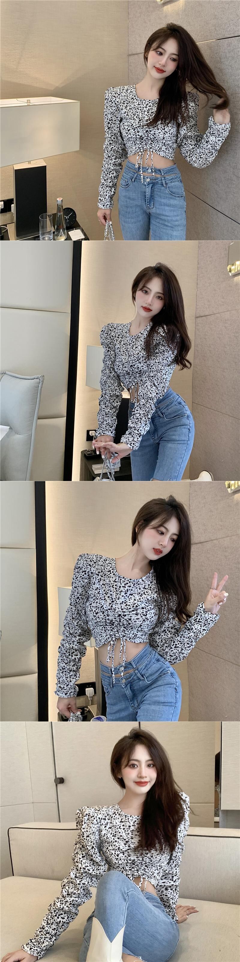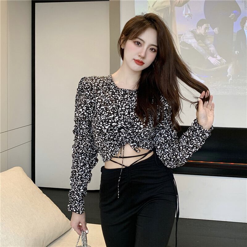 フローラルブラウス ギャザープリーツスリーブシャツ 大人ガーリー スウィート キュート カジュアル 花柄 Xiaofeijia92550828395