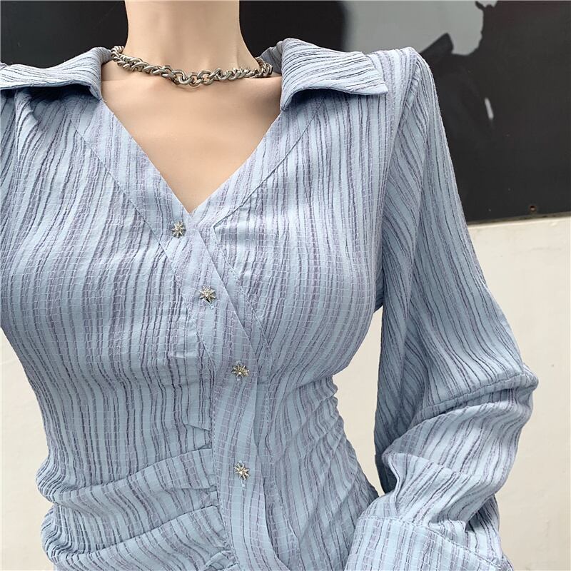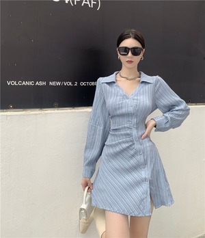 Vネックブルードレス ウェストシャツ スカート ショート ロング Xiaofeijia57246118105