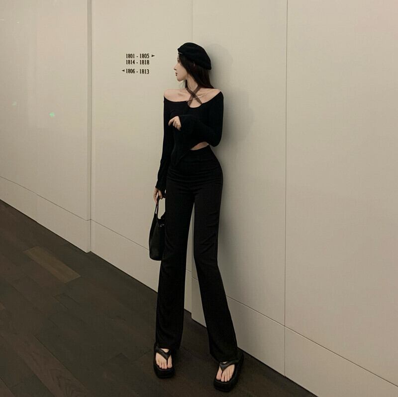 色:ブラックトップ,白のシャツ,黒いズボン
