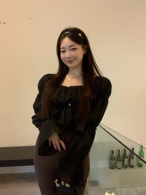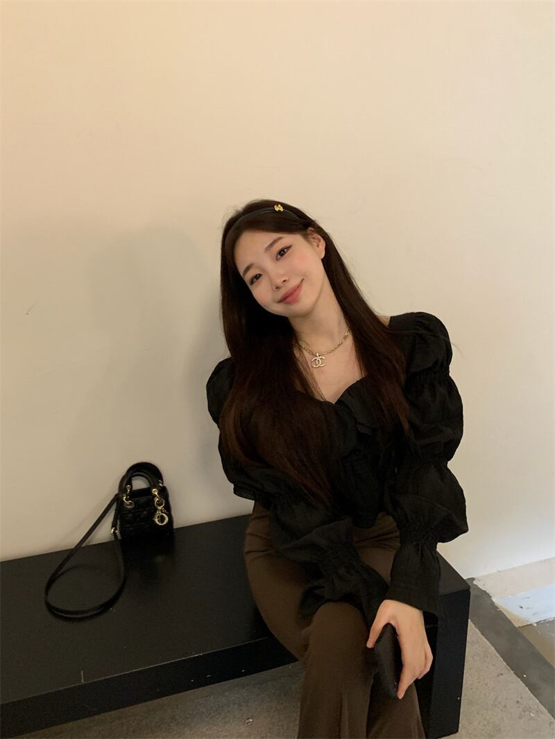 スタンダードスリーブトップス レトロ スクウェア Xiaofeijia35949222779