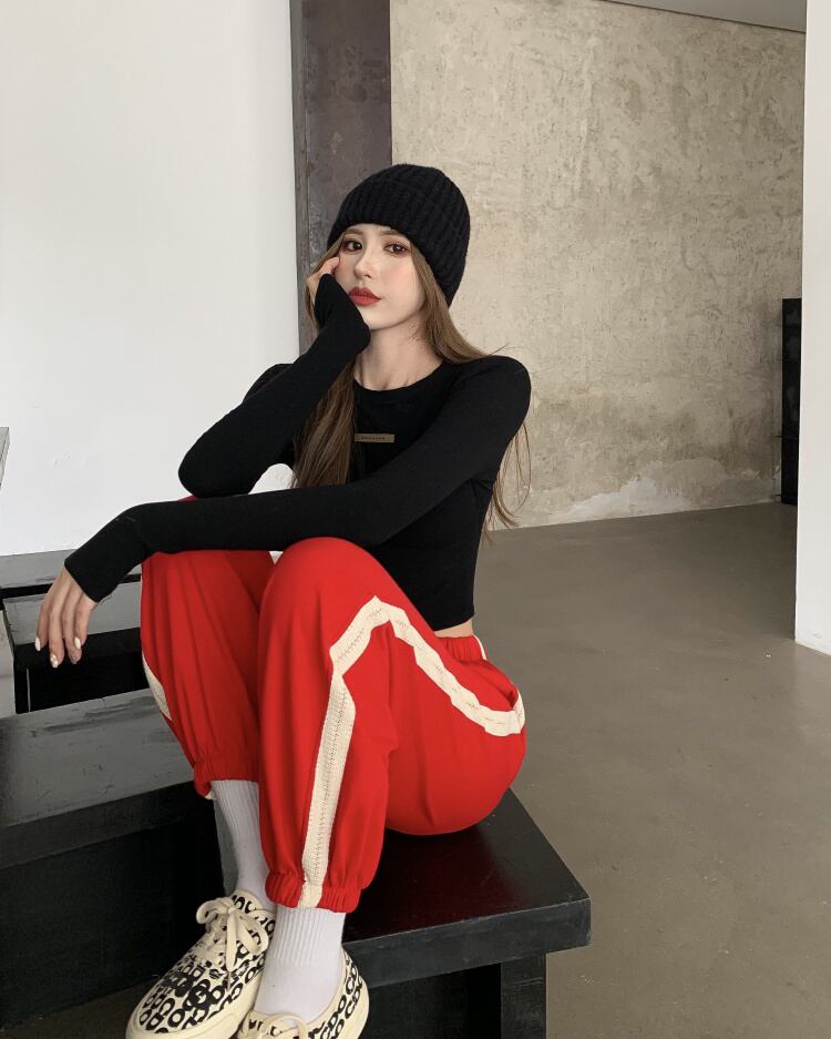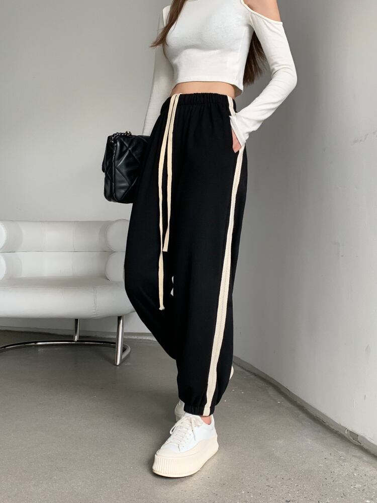 カラーストレッチハイウェストウェストカジュアルパンツ オータムルーズレディース ストリート エラスティック 伸縮 秋物 Xiaofeijia46012531233