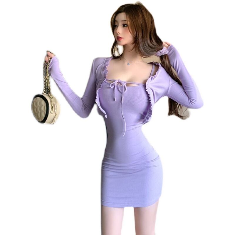 スリムスカート 長袖スリーブショートカーディガンセット ロング Xiaofeijia46917894097