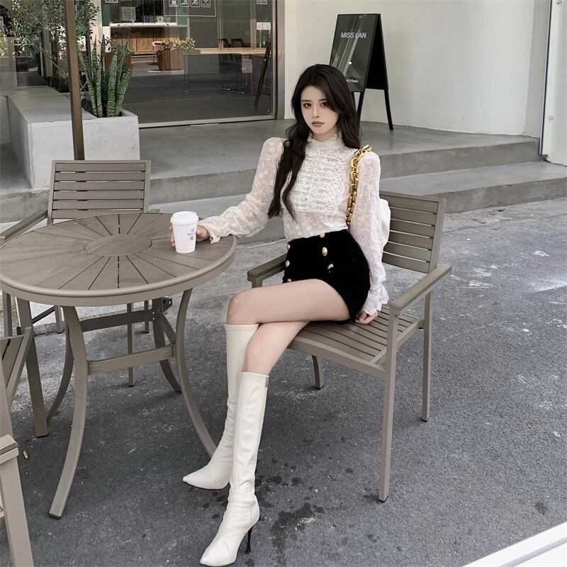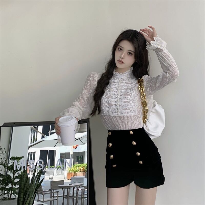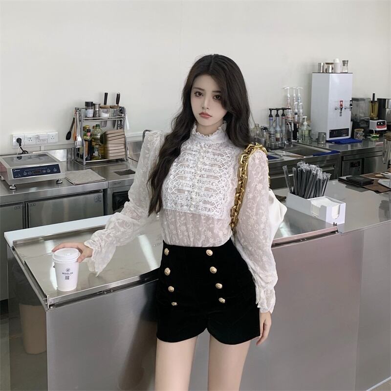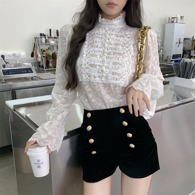 レーススタイルスタンダードバックルブラウス ベルベットショーツ レトロ ブルマー Xiaofeijia34921446173