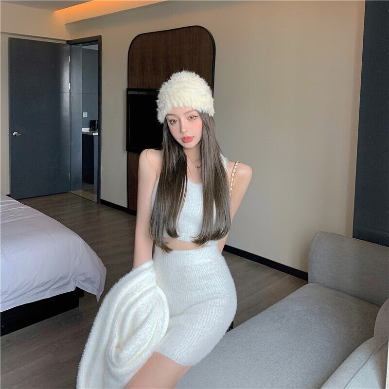 ルーズロングセーター コート ホワイトショートスカート ラインオータムウィンター 秋物 冬物 Xiaofeijia53583549027