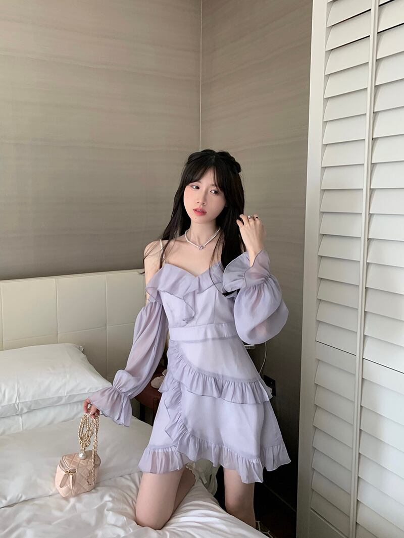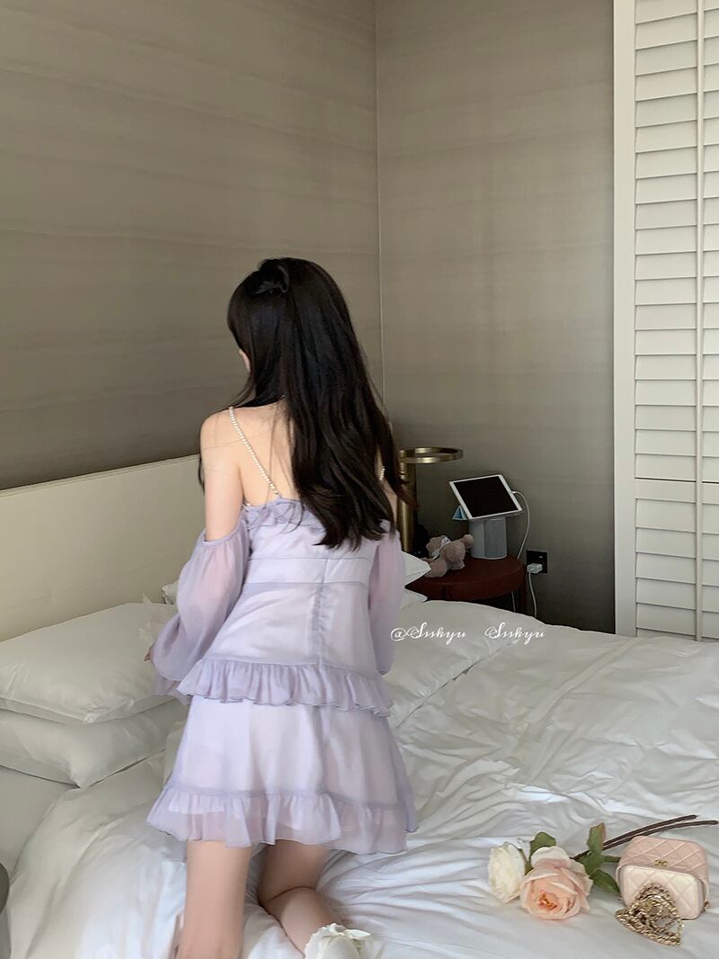 パールドレス スカート レッド オフショルダー ピュア 真珠 パープル Xiaofeijia84257540312