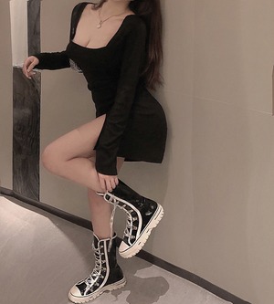 スリムショートスカート 長袖スリーブAライン ロング スクウェア Xiaofeijia46523308276