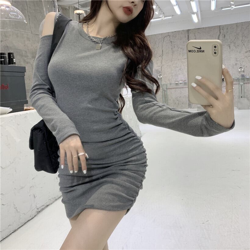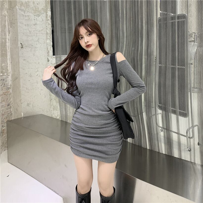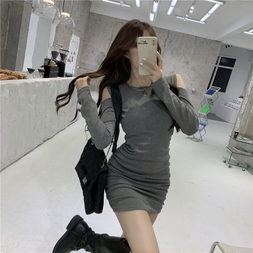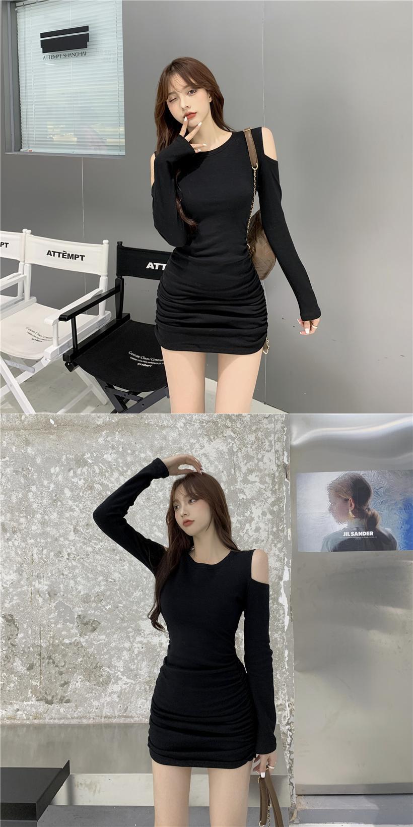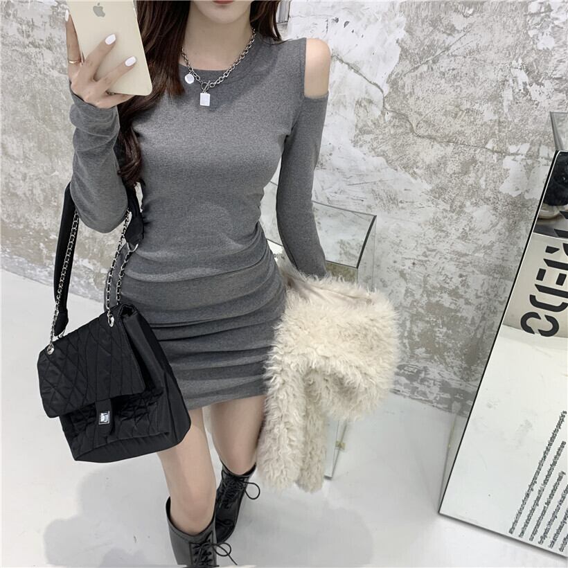 オータムウィンタースリムドレス ベルベットスカート 秋物 冬物 オフショルダー Xiaofeijia97484580371