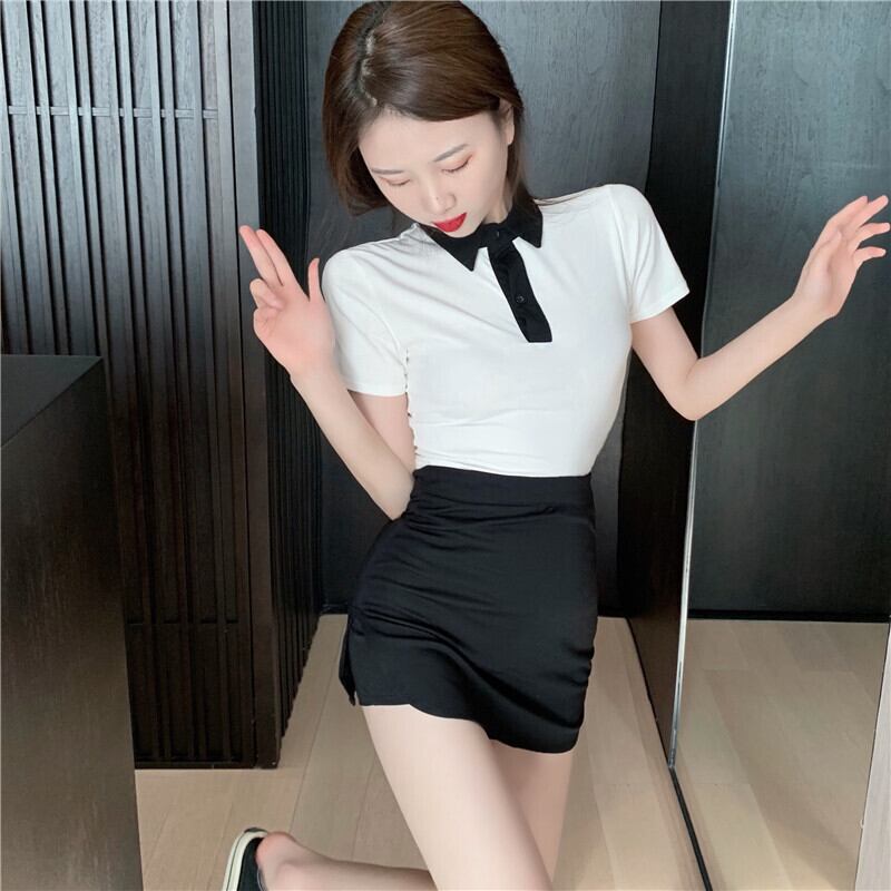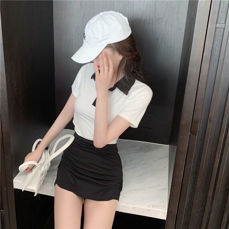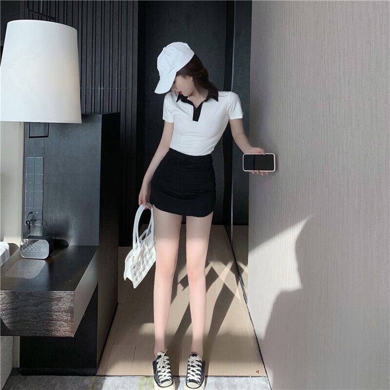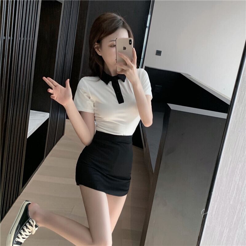 サマーカラーショートTシャツ トップス ハイウェストウェスト 夏物 Xiaofeijia51957789922