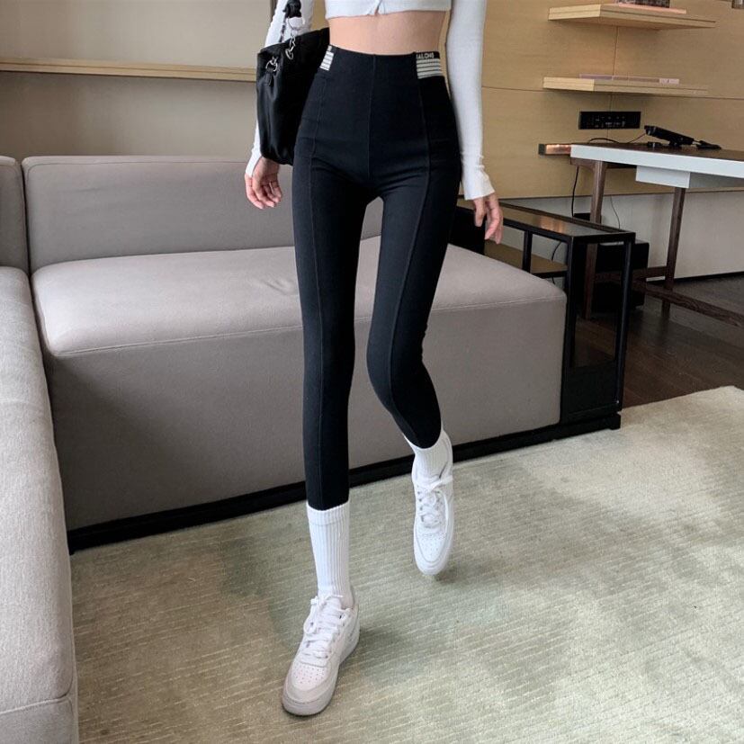 ストライプハイウェストレギンス オータム薄手パンツ 秋物 Xiaofeijia49204183688