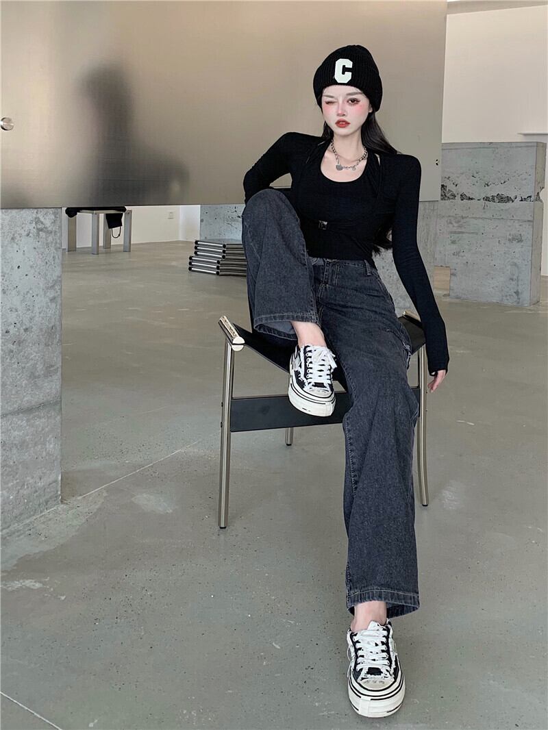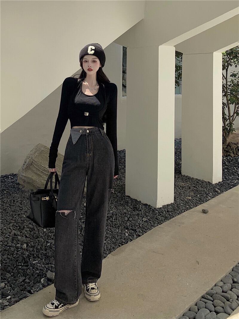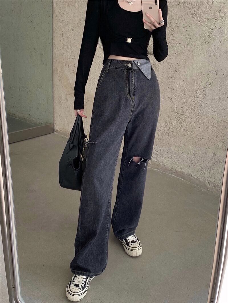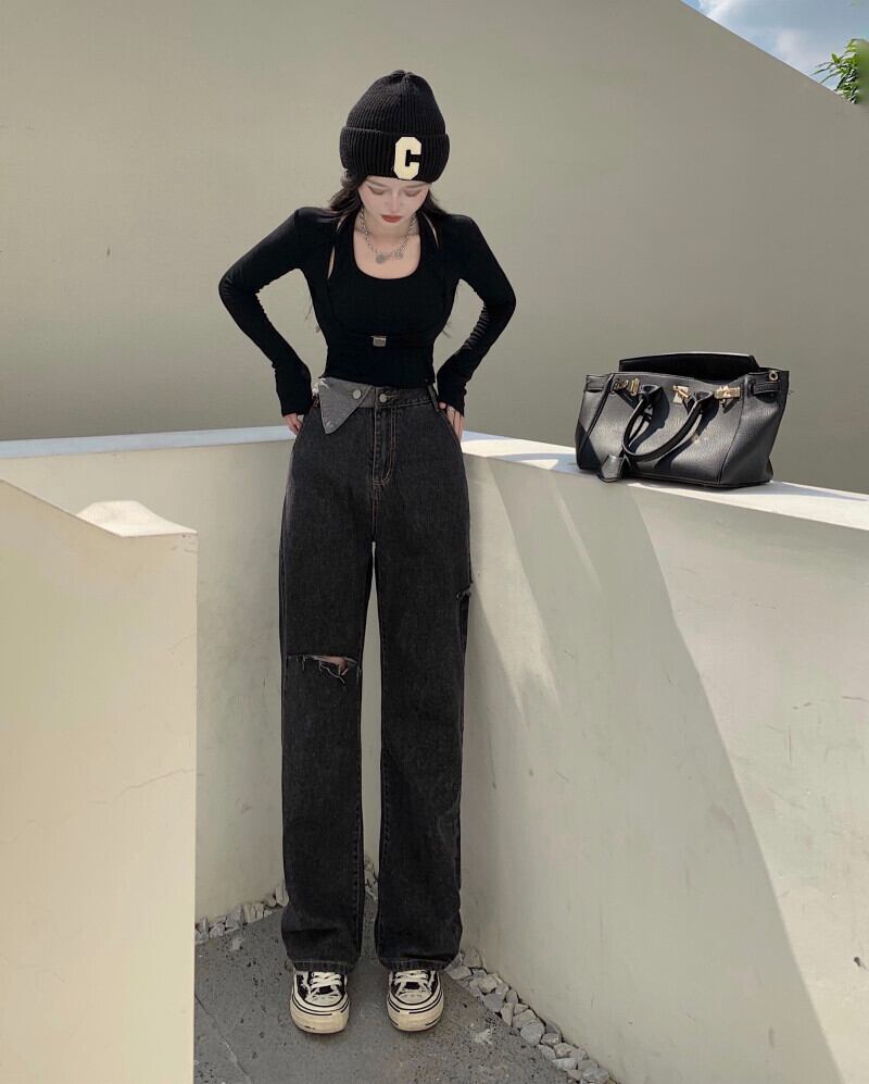 ウェストジーンズ レディーススタイルパンツ ルーズオータムワイドレッグ 秋物 ワイドパンツ Xiaofeijia58261871803