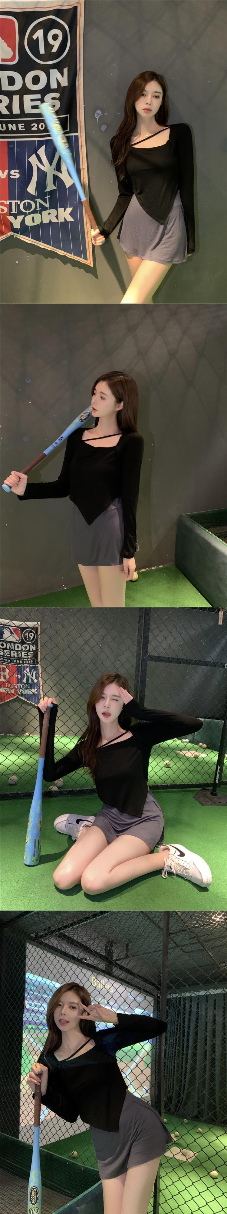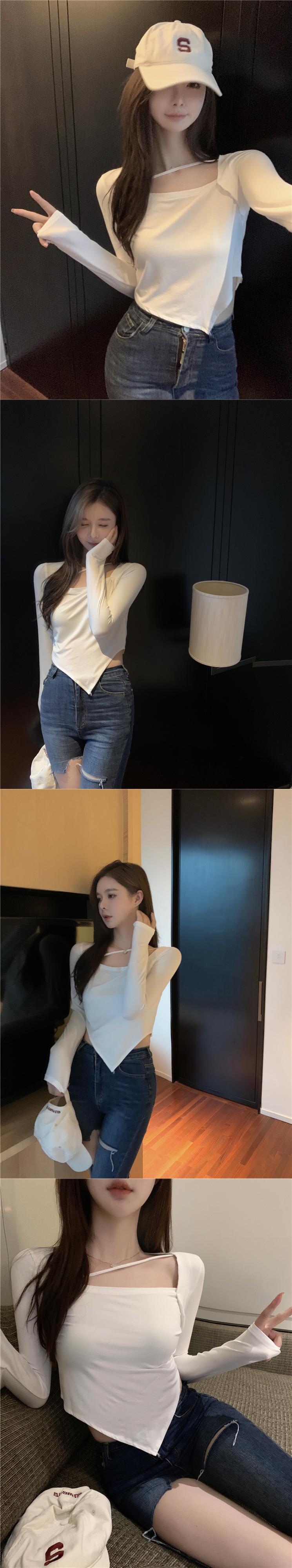 オータムTシャツ スリムカラーショートトップス ロング 秋物 スクウェア Xiaofeijia16150829267