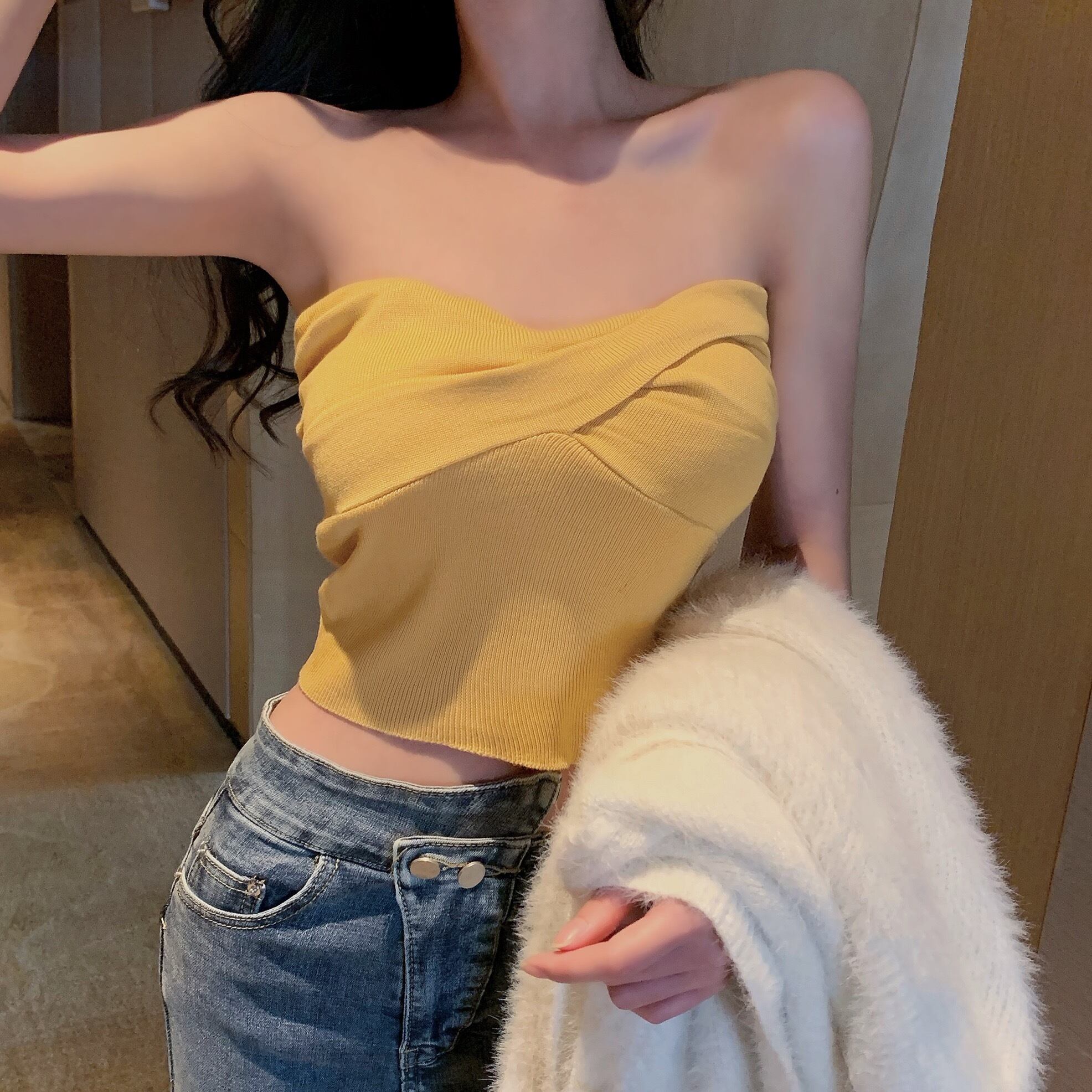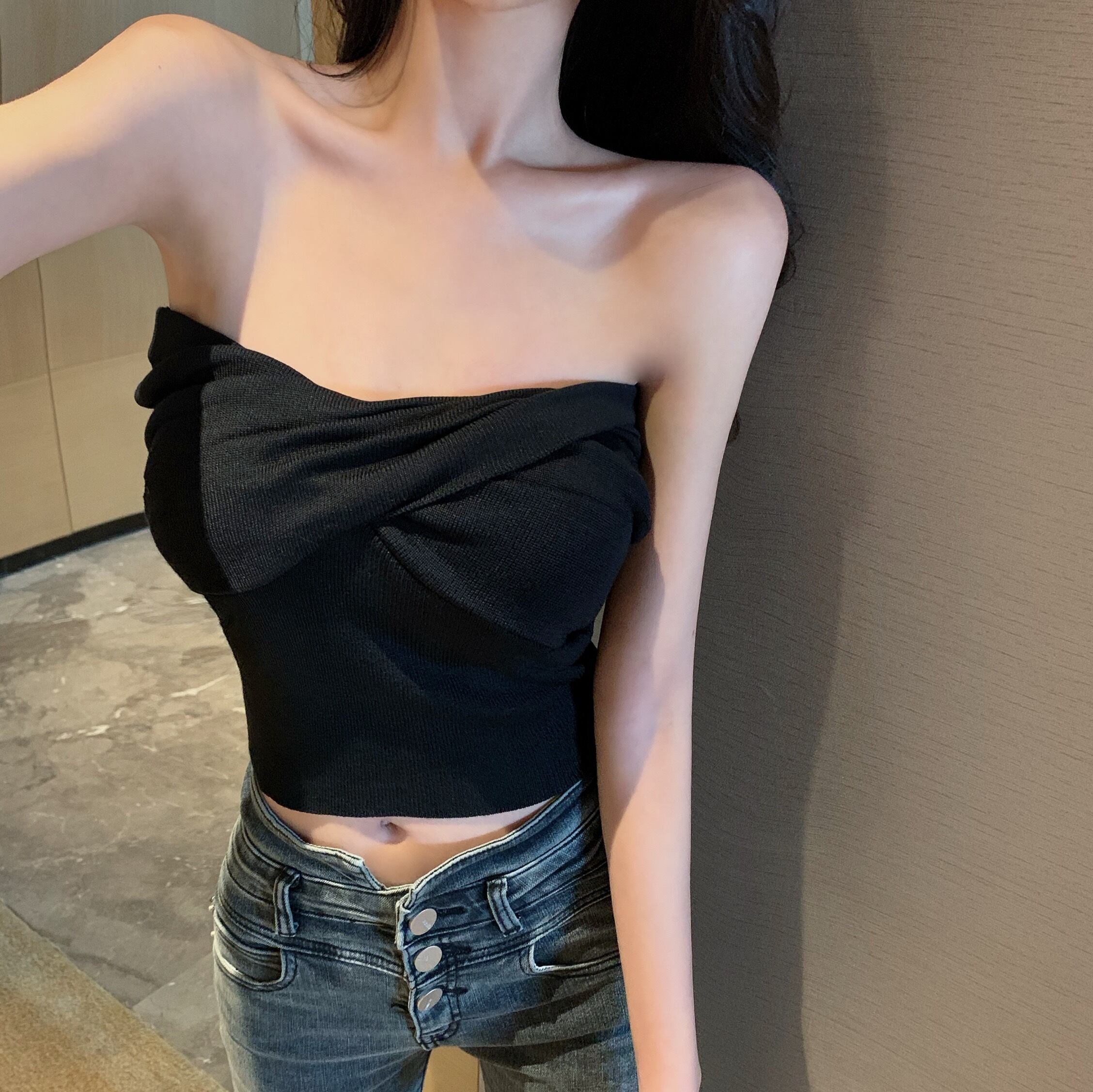 ニットサマートップス スリムショートノースリーブシャツ 夏物 Xiaofeijia35519020908