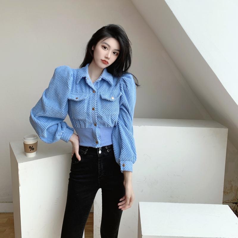 スタンダードスタイルスリーブホワイトコーデュロイショートジャケット トップス レトロ Xiaofeijia39493685184