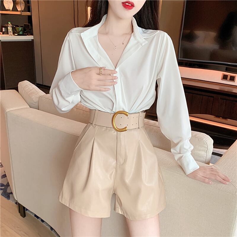 レザーショーツ オータムスタイルハイウェストウェストカジュアルパンツ ブーツ 靴 シューズ 秋物 ブルマー Xiaofeijia81549141935