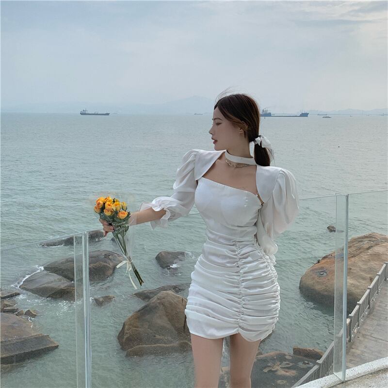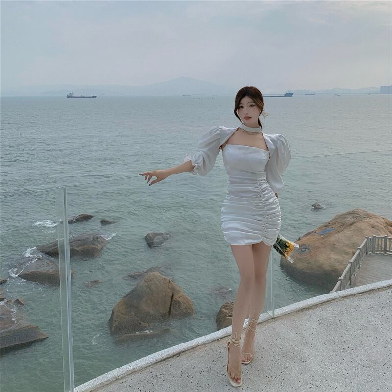 サマースタンダードショートスカート トップス ドレス スリーブ レトロ 夏物 Xiaofeijia93830053447