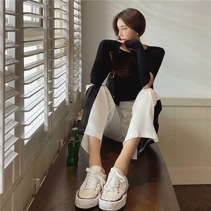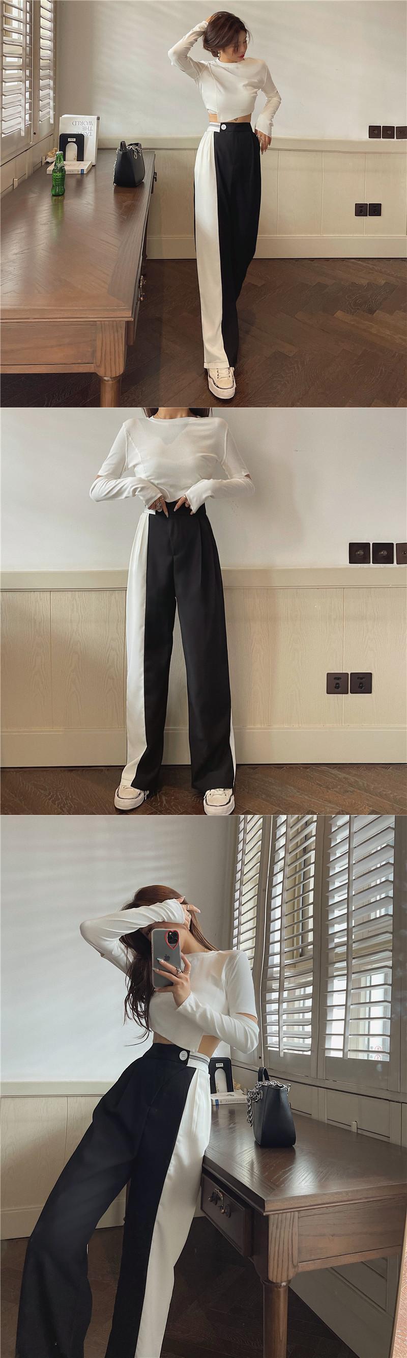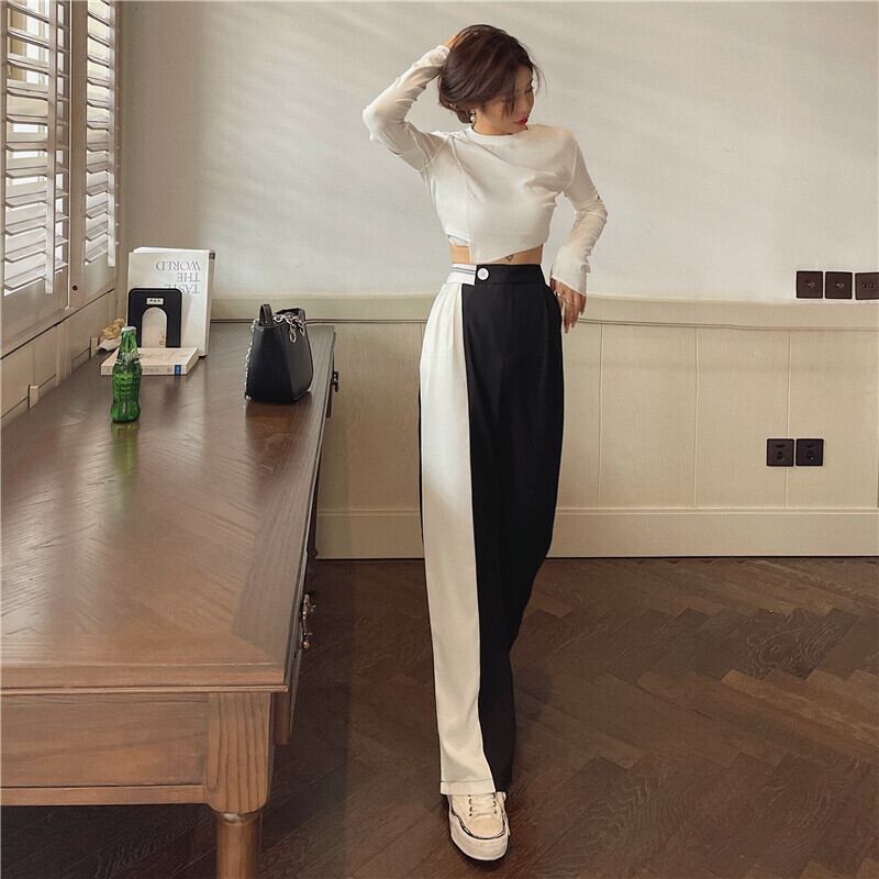 ブラックホワイトパンツ サマーハイウェストショートTシャツ 夏物 ステッチ Xiaofeijia22696036984