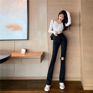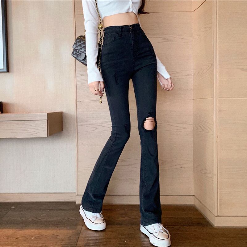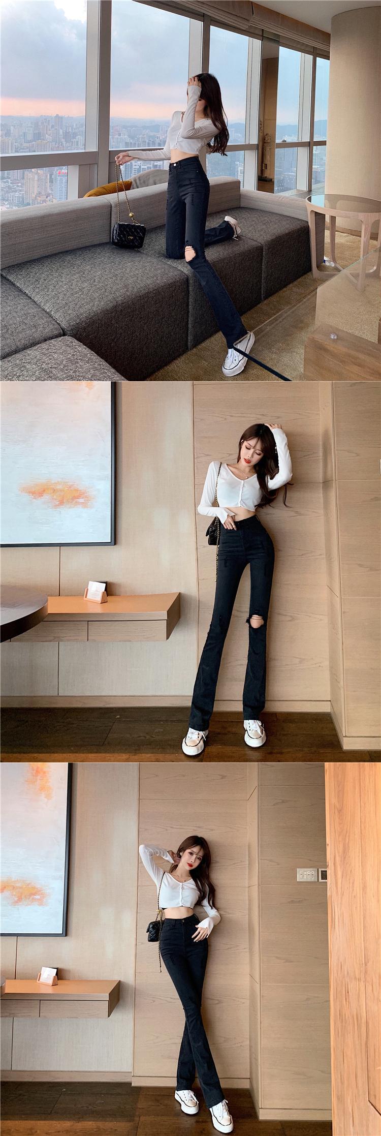 スタンダードレディースハイウェストウェストパンツ スプリングオータムブラックジーンズ レトロ 春物 秋物 Xiaofeijia78106169433