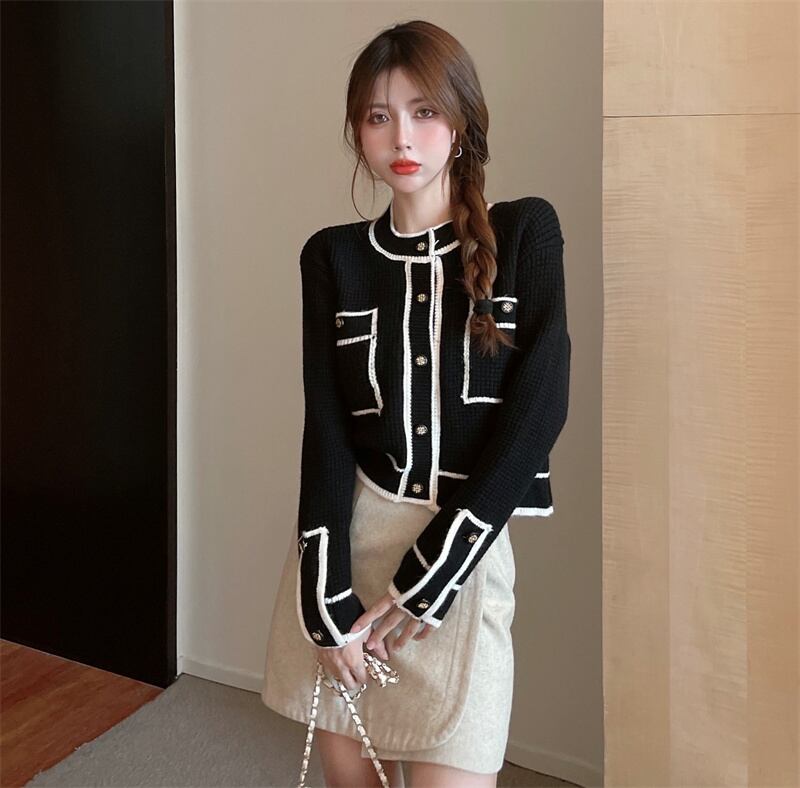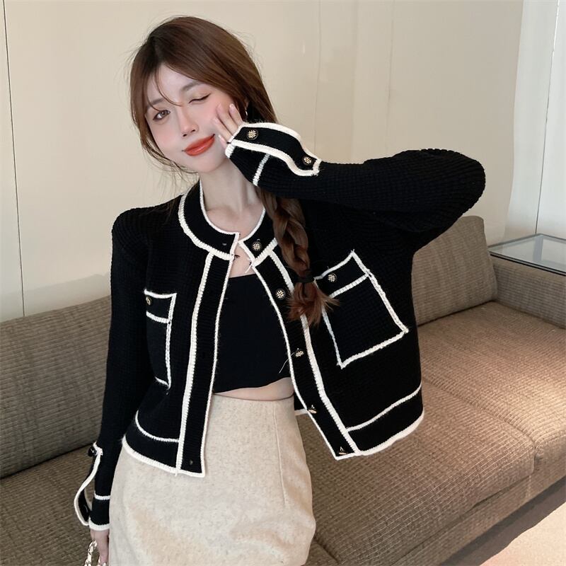 ニットカーディガンカラールーズセーター クロップドトップス コート Xiaofeijia3724033190