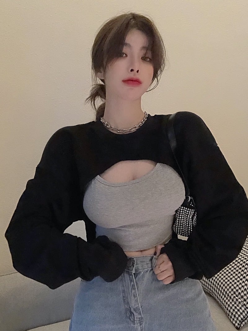 色:白いセーター,黒いセーター,グレースリング,ブラックサスペンダー