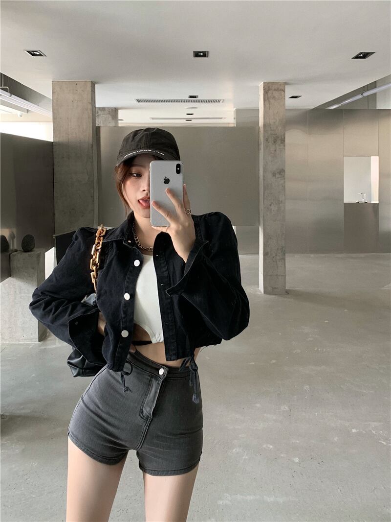 プリーツショートシャツ ジャケット トップス ストリート Xiaofeijia77933561298