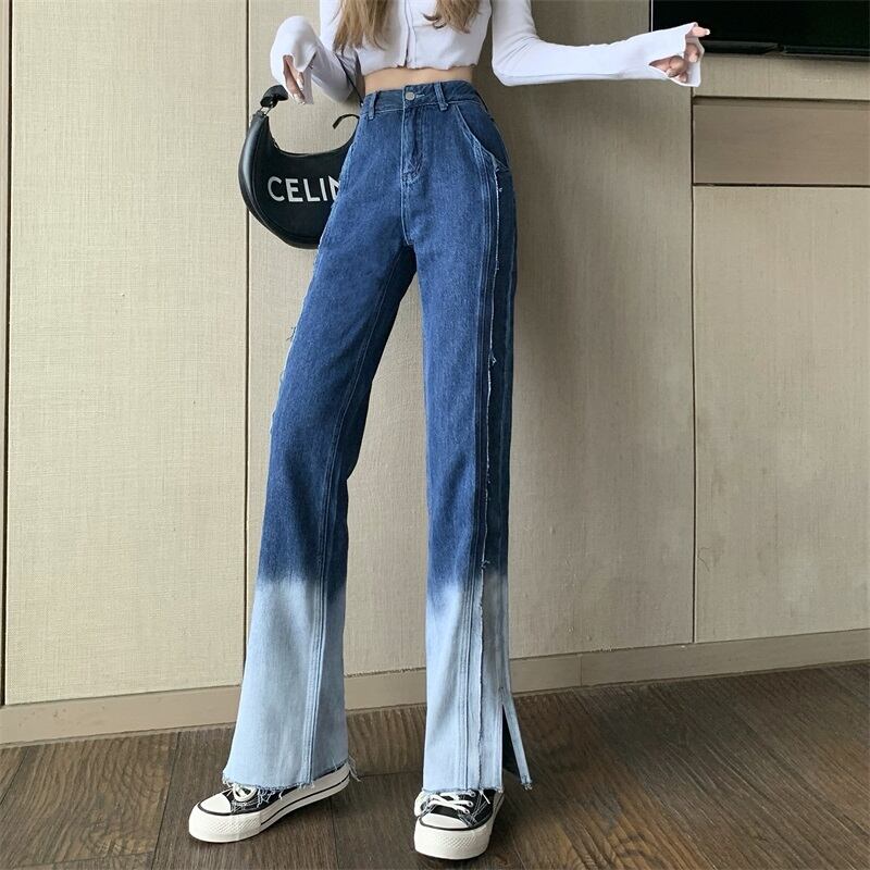 ウェストサイドスリットジーンズ ルーズブルーパンツ オータムワイドレッグ ストリート 秋物 ワイドパンツ Xiaofeijia10861447867