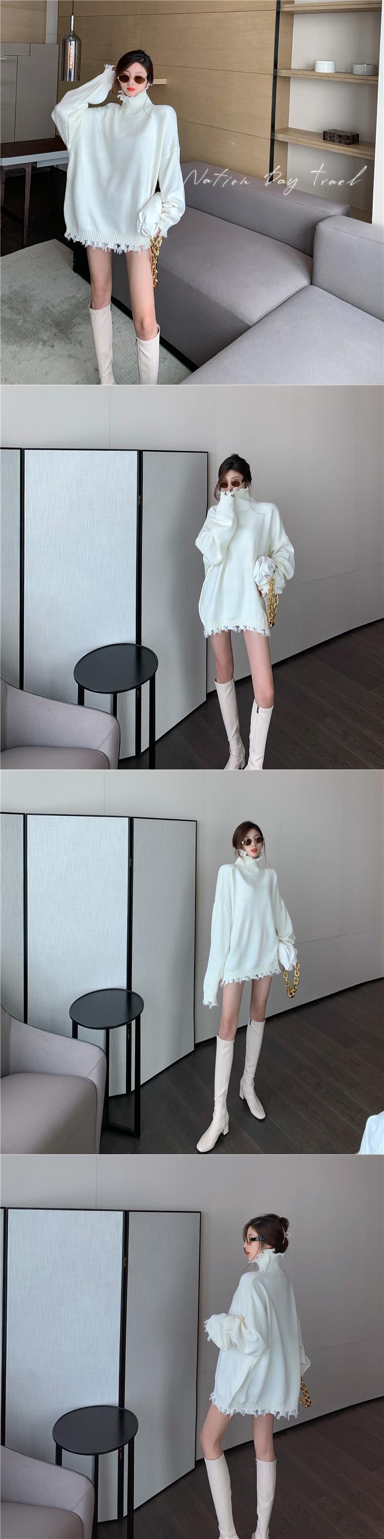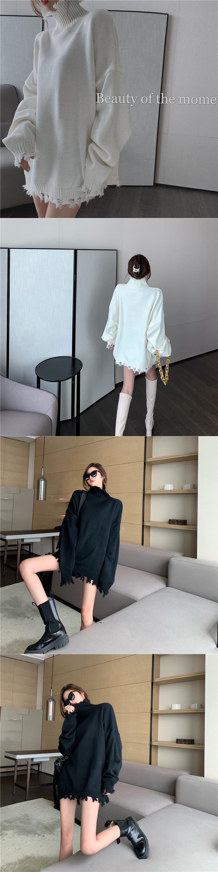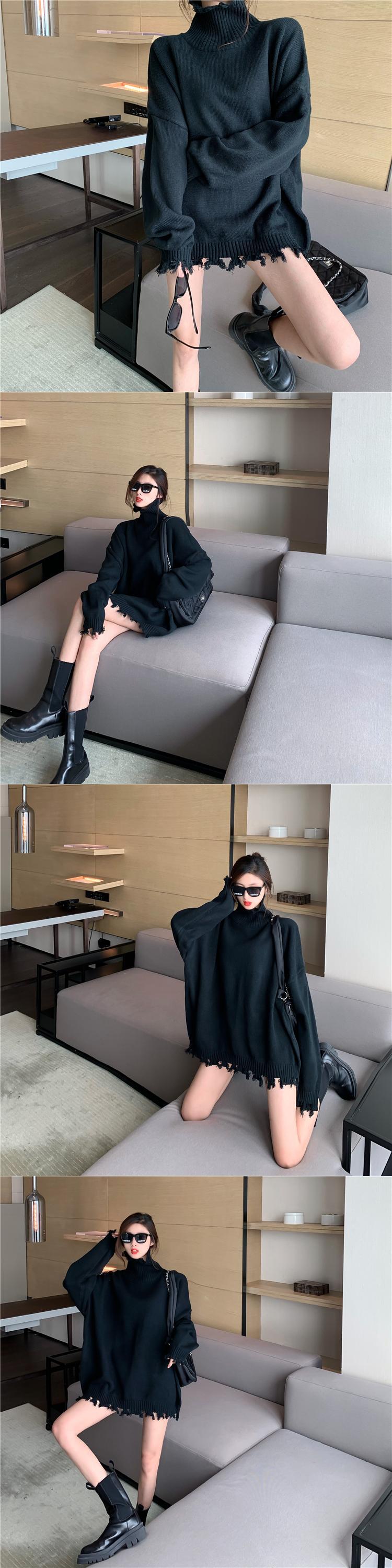 セーター ルーズカラー薄手長袖スリーブレディース ロング レッド Xiaofeijia99749715320
