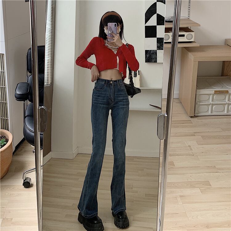 スタンダードパンツ ハイウェストウェスト レッド レトロ Xiaofeijia35843657161