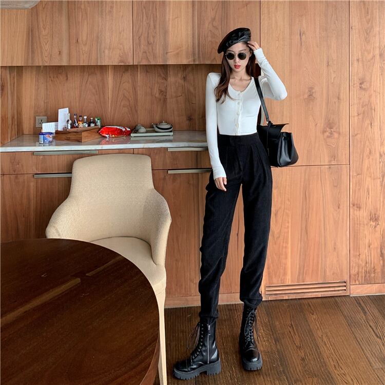 バックストレッチハイウェストウェストカジュアルパンツ オータムウィンター エラスティック 伸縮 秋物 冬物 Xiaofeijia49393319297