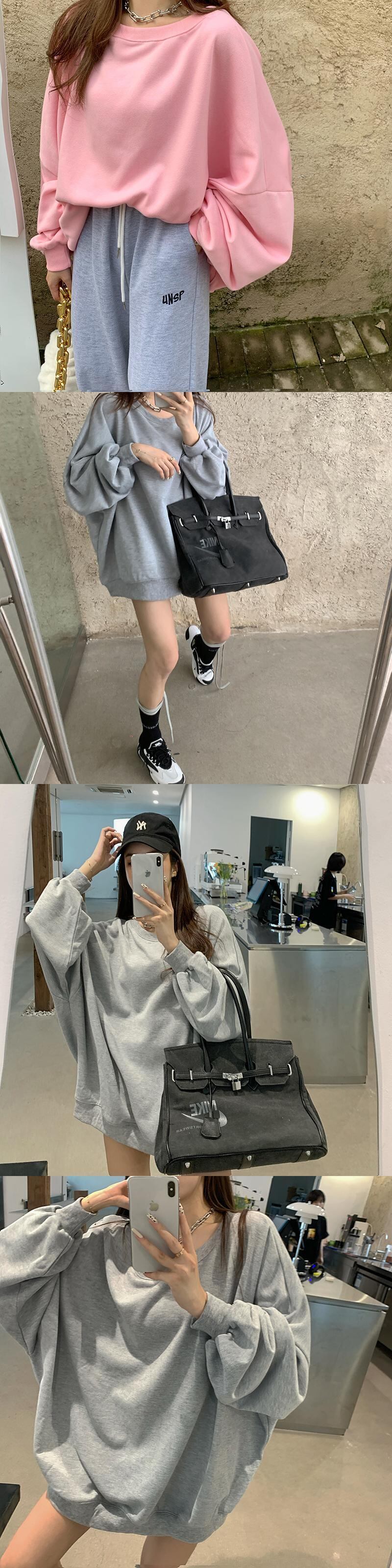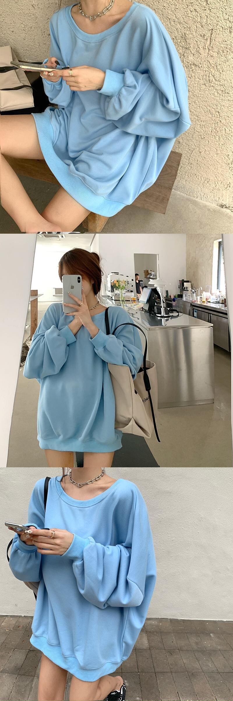スプリングオータムブルーセーター レディースルーズロングラウンドネック長袖スリーブトップス 春物 秋物 Oネック Xiaofeijia47074485554