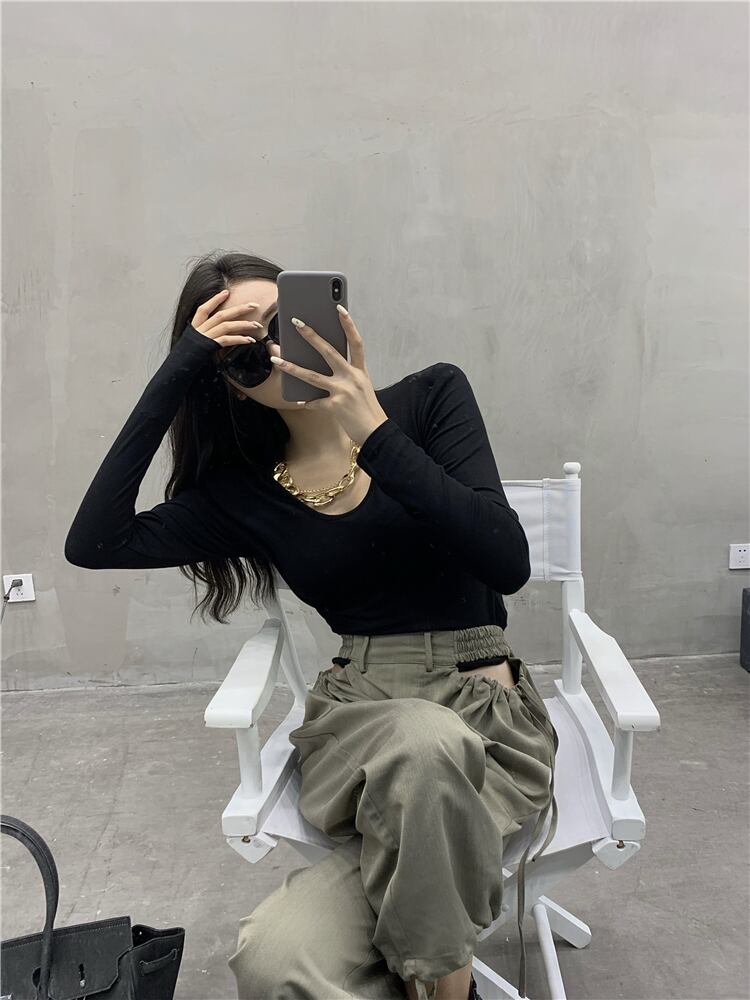 オータムシャツ スリム ロング 秋物 チェーン Xiaofeijia74166561689