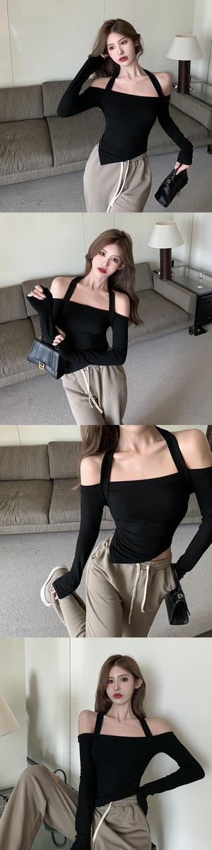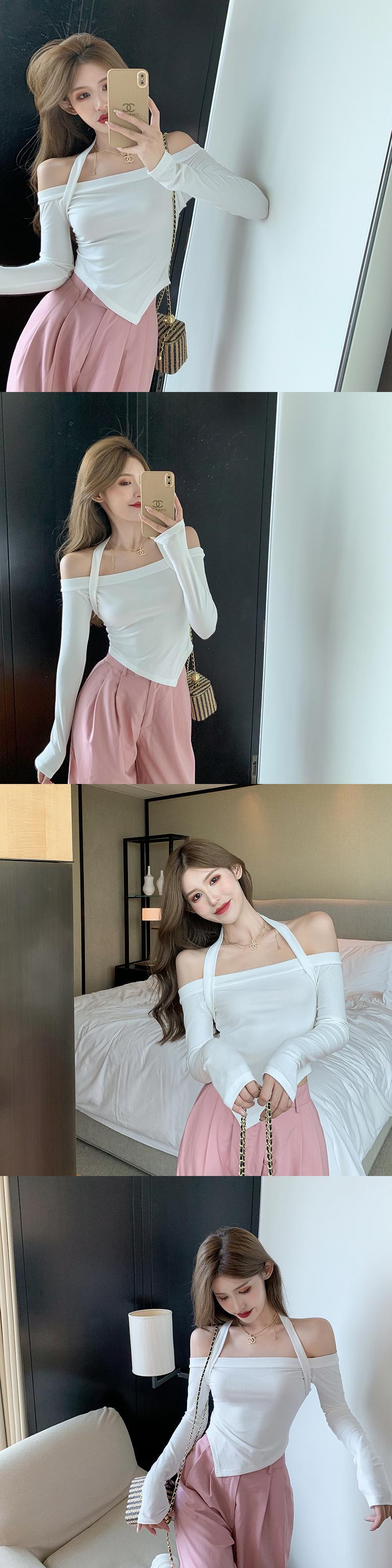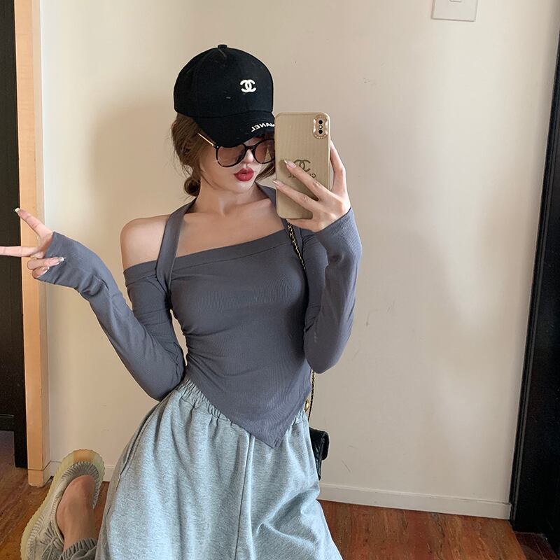 オータムトップス スリムショートTシャツ ロング 秋物 Xiaofeijia8988304581