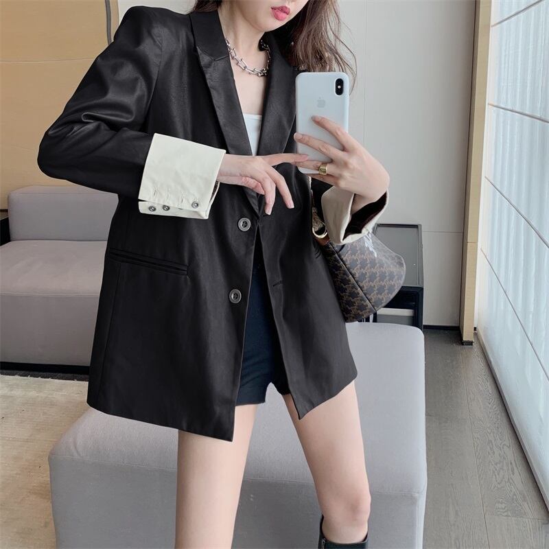 ルーズレザージャケット カラーオータム ロング 秋物 Xiaofeijia1127784462
