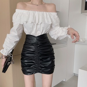 プリーツレザースカート オータム薄手ハイウェストウェストショート 秋物 Xiaofeijia69080543952