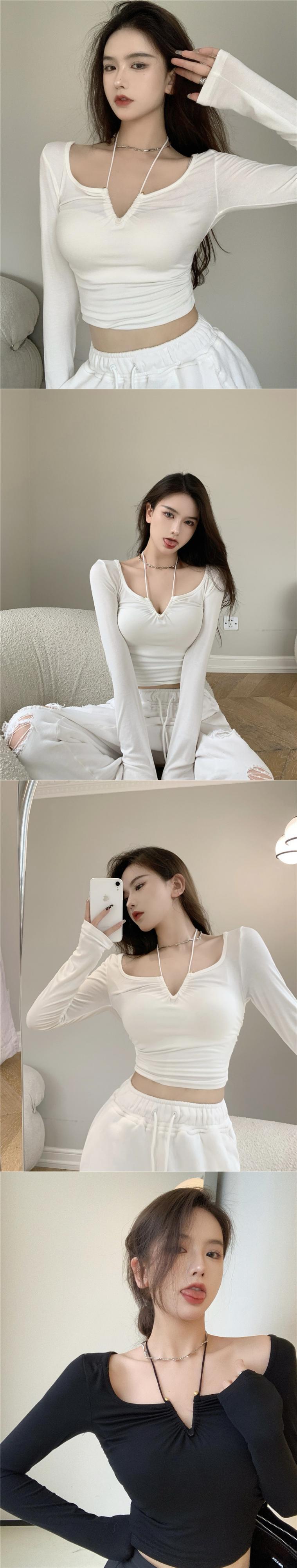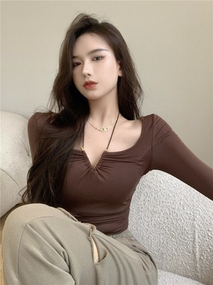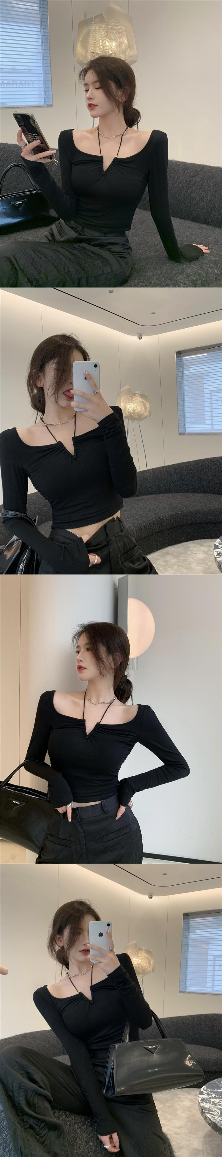 Tシャツ シャツ レディースオータムブラックトップス ロング 大人ガーリー スウィート キュート カジュアル 秋物 Xiaofeijia26438700965