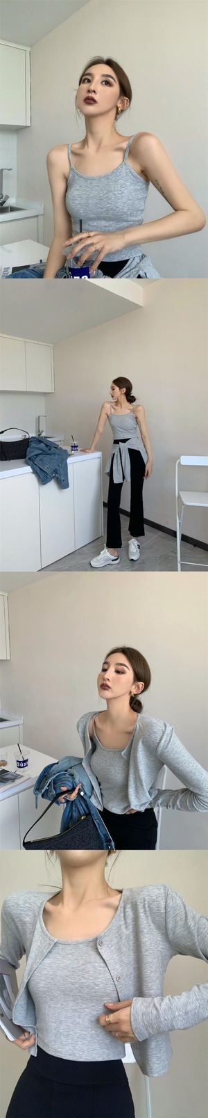 色:ホワイトサスペンダー,カードカラースリング,グレースリング,白いカーディガン,カードカーディガン,グレーのカーディガン,パンツ