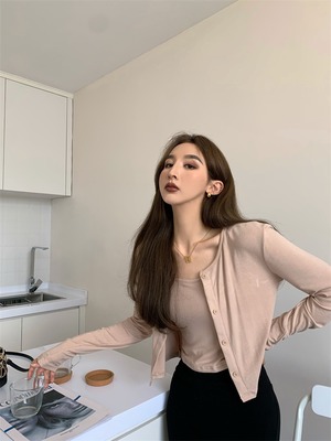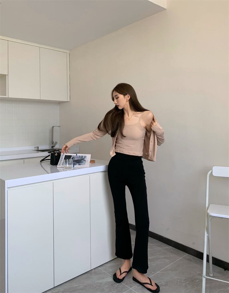 スリムトップス カーディガンブラックハイウェストパンツ レッド Xiaofeijia65081959857
