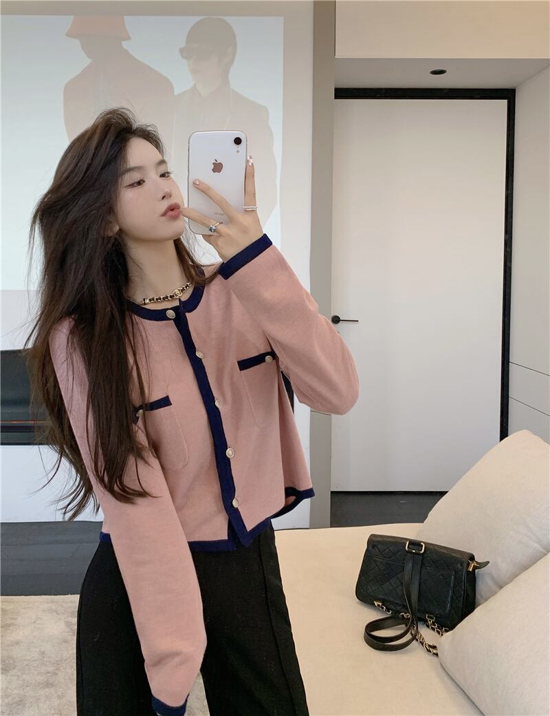 薄手カラーニットカーディガンオータムセーター ルーズクロップドトップス ロング 秋物 Xiaofeijia4608754148