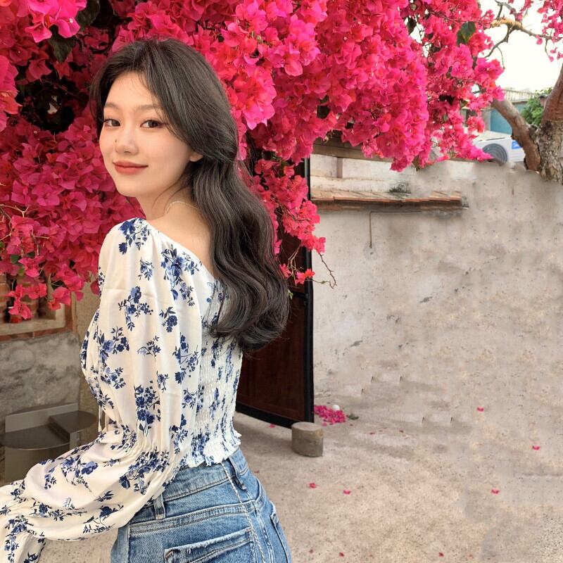 フローラルシャツ スリーブサマーショートクロップドトップス ロング 夏物 花柄 スクウェア Xiaofeijia20033045860